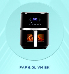 FABER FAF 6.0L VW BK 1500W, Fry, Roast, Grill, Bake, Digital Display, Viewing Window, Aesthetic Look, Swirl Cooking, Cool Touch Handle, 85% Reduced Oil Usage, Auto Shut Off, BPA Free, Compact Sleek Design, Manual Control, Non-Stick Pan Air Fryer