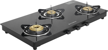 FABER Faber Spark 3BB BK| Easy Maintenance| Anti-Skid Feet| Brass Burners| Glass Manual Gas Stove