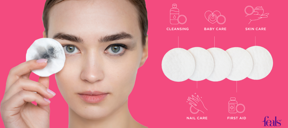 FEALS Cotton Pads for Face/Eyes, Makeup Remover Wipes (120 Rounds/Pouch) (Pack of 4)