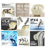 Fitpro X ATOM Premium TWS Earbuds with Atom Audio, 52H Playback Bluetooth
