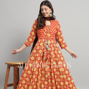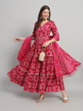 Gujari Women Gown Pink, Red, Green Ankle Length Dress
