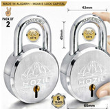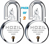 HOZIL 65MM Lock | Hardened Shackle | Double Locking | 8 Levers (Pack of 2) Padlock