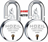 HOZIL 65MM Same Key Lock | Hardened Shackle | Double Locking | 8 Levers (Pack of 2) Padlock