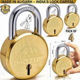 HOZIL 65MM Lock | Hardened Shackle | Double Locking | 8 Levers (Pack of 4) Padlock