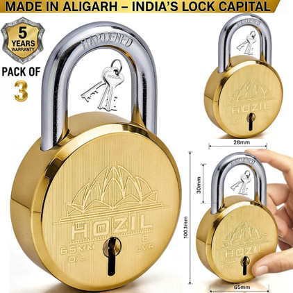 HOZIL 65MM Lock | Hardened Shackle | Double Locking | 8 Levers (Pack of 3) Padlock