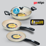 IMPEX Nonstick Granite Festival GiftMFKT 5 Layer Super Granite Induction Bottom Non-Stick Coated Cookware Set