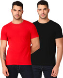 Inner Element Solid Men Round Neck Red, Black T-Shirt