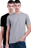 Inner Element Solid Men Round Neck Black, Grey T-Shirt