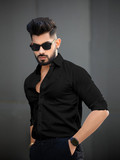 JINIK Men Solid Party Black Shirt