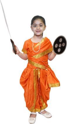 KAKU FANCY DRESSES Rani Laxmi Bai Saree For Girls, Freedom Fighter Costume With Accessory,5-6 Yrs Kids Costume Wear