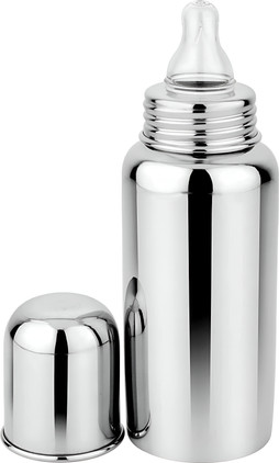 LEVOT Stainless Steel Feeding Bottle with High Grade Silicon Nipple - Stainless steel