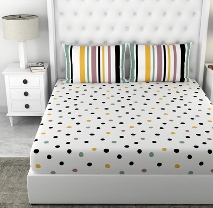 LORETO Cotton Double Flat 144 TC Polka 1 Bedsheet with 2 Pillow Covers