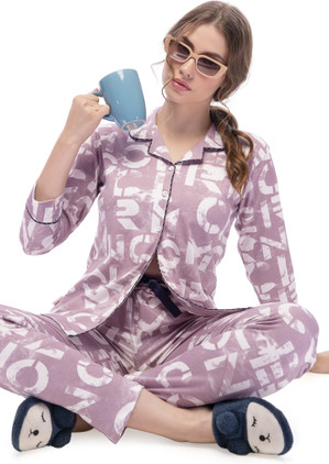 LOTIK Women Printed Pink Shirt & Pyjama set