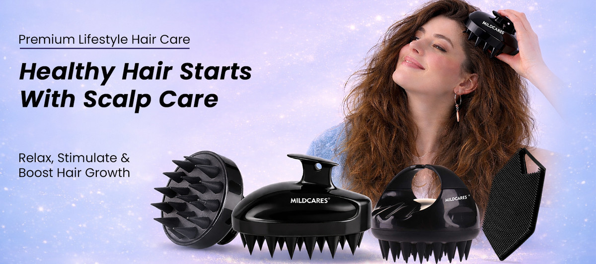 Mildcares Rechargeable Head & Neck Massager Combo | Smart Scalp Massager for Hair Growth + 4D Shiatsu Cervical Pillow with Heat | Stress Relief & Pain Relaxation Massager