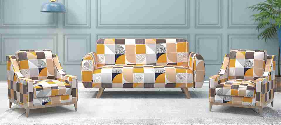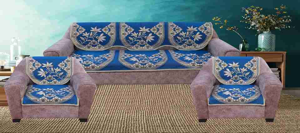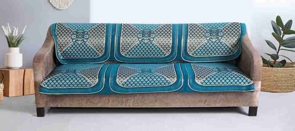 Nendle Velvet 3+1+1 Seater Sofa Damask Cover