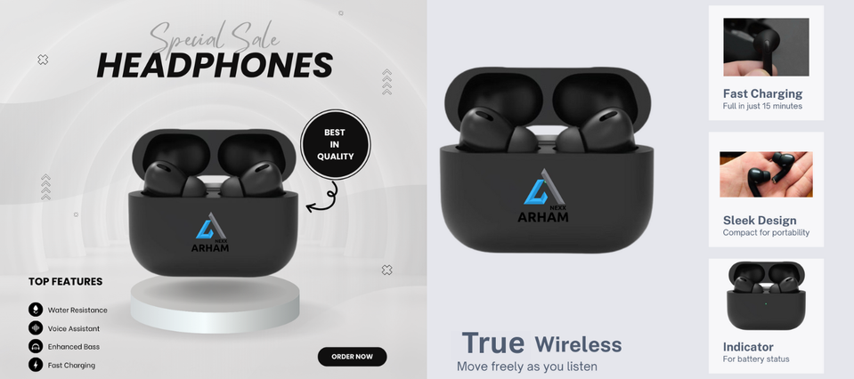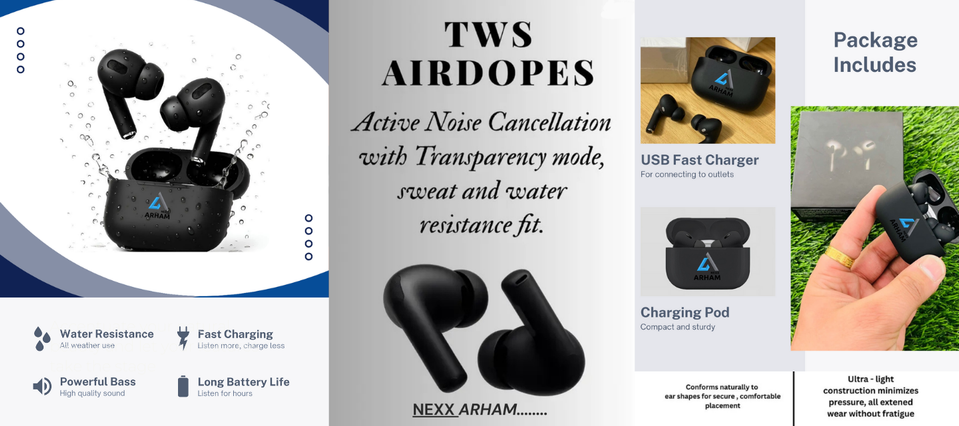 NEXX ARHAM TRUE WIRLESS BLUETOOTH AIR_PODS WITH GOOD SOUND QUALITY BASS+10 H Playtime Bluetooth