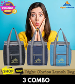 RIGHT CHOICE Combo Offer Lunch Bags (BEIGE BLACK) Branded Premium Quality Carry on Tote for School Office Picnic Travel Camping Outdoor Pouch Holder Handbag Compact Heat Preservation Waterproof Hygiene Meal Prep Box Bag for Men Women and Kids, Color (COMBO BEIGE BLACK) Small Travel Bag - midam sized (BEIGE BLACK) (Nursery/Play School) Waterproof Lunch Bag