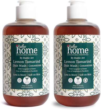 RUSTIC ART Lemon Tamarind Dish Wash Concentrate (300g*2) |Pack of 2 Dish Cleaning Gel