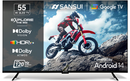 Sansui 140 cm (55 inch) QLED Ultra HD (4K) Smart Google TV with Dolby Vision| HDR10+| Dolby Atmos| HSR 120Hz| MEMC| 30W Surround Sound| FloLED Panel