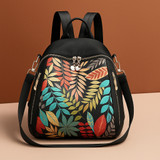 speginic Trendy Black Backpack with Colorful Leaf Print, Multi Pocket, Stylish & Durable 15 L Backpack