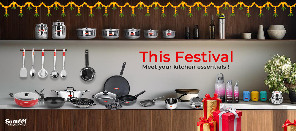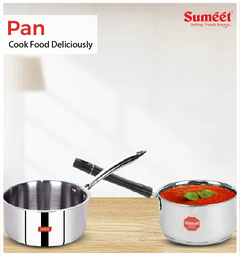 Sumeet 3 Pcs Stainless Steel Induction & Gas Stove Friendly Belly Shape Container Set / Tope / Cookware Set With Lids Size No.10 to No.12 Handi 1.1 L, 1.4 L, 1.75 L with Lid