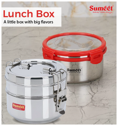 Sumeet Stainless Steel Meal Pack Tiffin with Steel Separator Plate&Lock Clip,250&300ml 2 Containers Stainless Steel Office Lunch Box