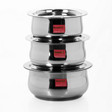Sumeet 3 Pcs Stainless Steel Induction & Gas Stove Friendly Belly Shape Container Set / Tope / Cookware Set With Lids Size No.12 to No.14 Handi 1.75 L, 2.4 L, 3.1 L with Lid