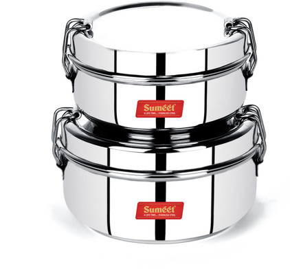 Sumeet Stainless Steel Food Pack Lunch Box with Steel Separator Plate and Locking Clip, Set of 2Pc, 350ML & 500ML Capacity 2 Containers Stainless Steel Office Lunch Box