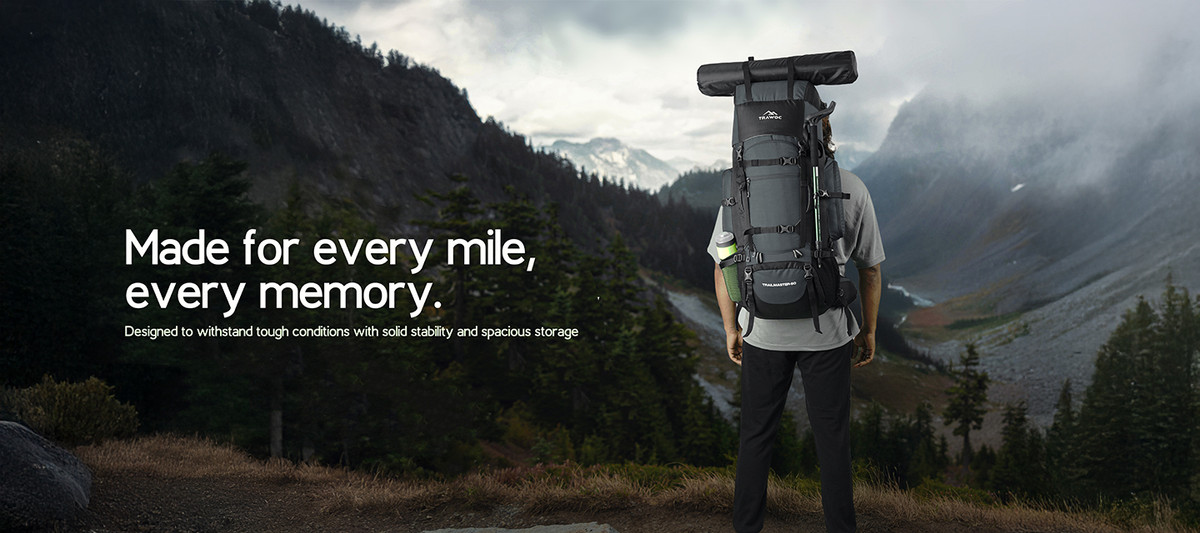 TRAWOC EXPEDITION 80L Travel Backpack Camping Hiking Bag with Rain Cover Rucksack - 80 L