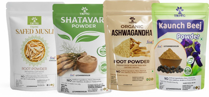 Trivang Ashwagandha, Safed White Musli, Kaunch Seed, Shatavari Powder (4 x 200 g) Combo