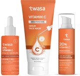 Twasa Vitamin C Face Wash 100ml, Serum 30ml & Moisturizer 25g Combo for Brightening, Dark Spot Removal, Even Skin Tone & Hydration
