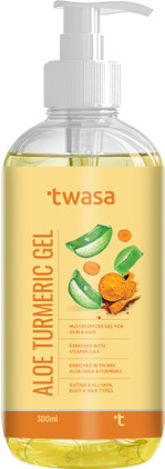 Twasa Pure Aloe Vera Turmeric Gel For Face, Skin & Hair | Multipurpose Gel For Glowing Skin | For Men & Women | Free From Parabens, Sulfates