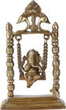 HanDecor by Two Moustaches brass Ganesh on Jhoola Decorative Showpiece - 22 cm