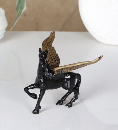 HanDecor by Two Moustaches Brass Flying Angel Horse - Black Decorative Showpiece - 10 cm