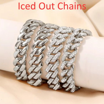 Vivity Iced Out CZ Miami Cuban Style Latest Trend Fancy Neck Chain Cubic Zirconia Silver Plated Alloy Necklace
