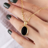 Vivity Latest Stylish Korean Design Gold Black Gometrical Oval Locket Gold-plated Onyx Stainless Steel Pendant