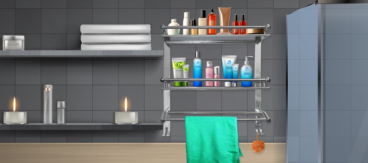 Well Set bathroom shelf single layer bottle holder shampoo Rack multi purposes Silver Towel Holder