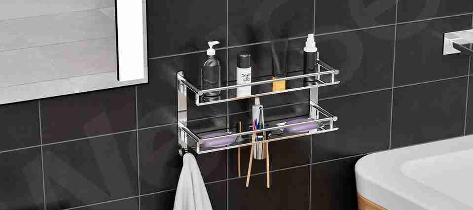 Well Set Bathroom Rack Shelf Shampoo Stand Multi Purposes kitchen Holder Iron Wall Shelf