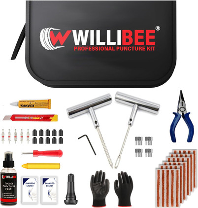 WILLIBEE 17-in-1 (20 Puncher Strips) Heavy Duty Complete Set for Bike & Car (Storage Bag) Tubeless Tyre Puncture Repair Kit