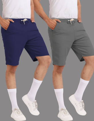 Yazole Solid Men Black, Grey Basic Shorts