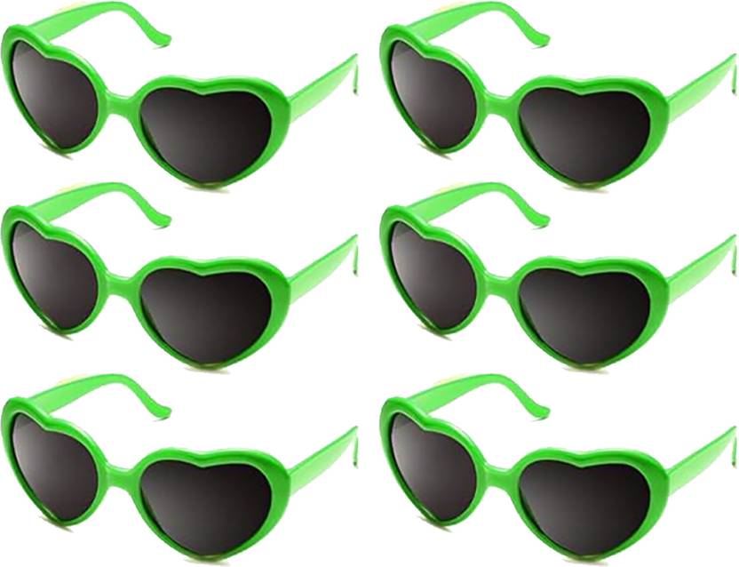 Pack of 6 Heart Shaped Sunglasses Unisex Framed Glasses Candy Colour Holi Pool Party Group Holidays (Green)