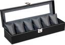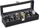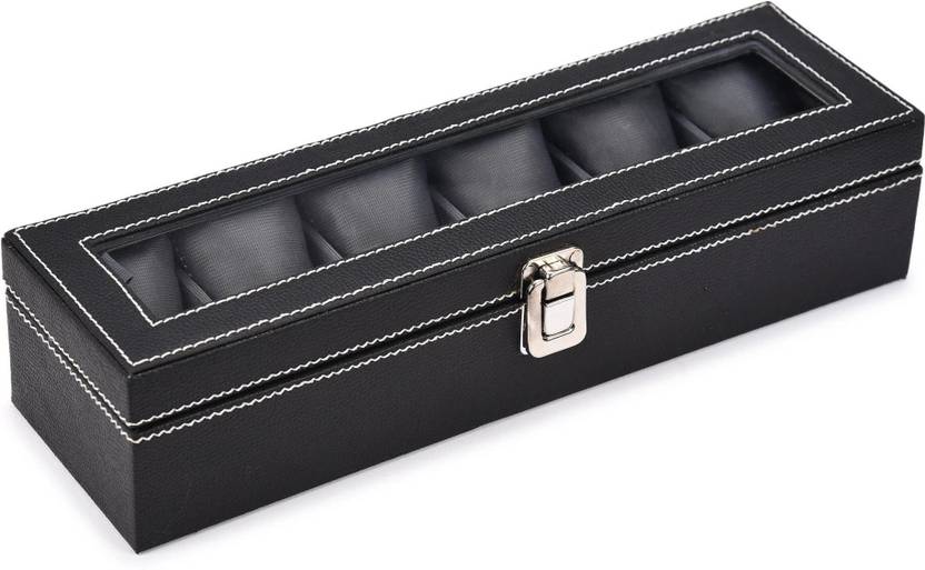 Men's and Women's Watch Box Holder Organizer Case in Black color(6 Compartments)