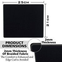 STORITE 250mm x 210mm x 2mm Speed Type Mouse Pad with Antifray Stitched Embroidery Edges Non Slip Base Mousepad (Black)