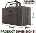 You can easily store and carry a large number of bulky items in this heavy-duty storage bag. The bag is Size: 71x34x40 cm. Litre Size :96.5 L.