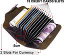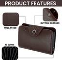 STORITE Presents Durable and luxurious Artificial Leather Card Holder Wallet. Perfect for everyday carry, our slim card holder fits comfortably in your pocket or purse. The soft and smooth texture of the exterior material feels great in your hands and is easy to grip. It has Perfect edges to ensure comfort in your bag, briefcase. You can make a notable impression simply with its Stylish and fashion look. With 13 separate slots, it can hold multiple credit cards, IDs, business cards, and more, keeping them neatly organized and easily accessible. This trendy, stylish leather card Holder is ideal for men and women of all age groups and for all occasion. Dimension : 10.5 x 7.5 x 2.6 cm.