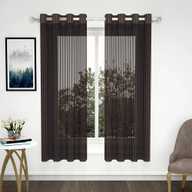 Story@home 152 cm (5 ft) Window Tissue Semi Transparent Curtain (Pack Of 2) (Coffee Brown, Striped)