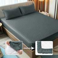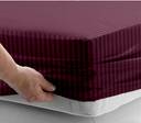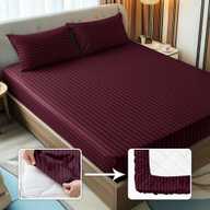 Story@home Microfiber Queen Fitted (Elastic) 300 TC Striped Bedsheet (Pack of 1, Maroon)