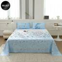 Story@home Cotton King Flat 240 TC Printed Bedsheet (Pack of 1, Sky Blue & White)