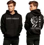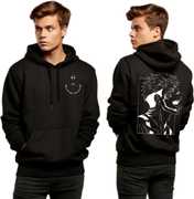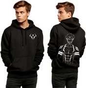Fabric Type: Cotton Blend Fleece, Fit Type: Oversized / Regular, Neck Type: Hooded, Sleeve Type: Full Sleeve, Pattern Type: Anime Graphic Back Print, Occasion: Casual / Streetwear / Winter Wear, Care Instructions: Machine wash cold, do not iron on print