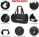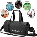 "Strap Lt Small Capacity:16.5*9.1*9.1 inch. Medium capacity:17.1*9.1*9.1 inch. With 20L capacity. Weights only 0.9lbs, which is 40% lighter than traditional gym bag. This sports duffel bag can hold clothes, iPad, cosmetics, shoes, towels, sports products and travel essentials. Good Build Quality & Lightweight Holdall. Made of top quality water-repellent polyester fabrics with sturdy hardware & smooth SBS zippers, and designed with contrast color of front zipper pocket, this gym bag combines style and durability. Special Design: Strong Handles for easy carrying.The medium bag easily converts to a shoulder or crossbody bag with a detachable & adjustable strap(27.5-55.1 inch long). It's easy to fold up into small compact,so you can easily fold the sports bag into its own pocket for storage,and unfold it when you go to the gym.A must have for sports and traveling. Multiple Pockets: Interior with 1 main compartment, 1 waterproof PVC pocket for dry and wet seperation, and 1 zipper pocket. Exterior with 1 front zipper pockets, 1 left mesh pocket and 1 right shoes compartment. It features a wet pocket and shoe compartment,wet pocket for some wet items,such as wet clothes,towel and swimming goggles after gym or swimming,independent large roomy shoe compartment with venting holes for shoes separate from other clean items,avoid bad odor."